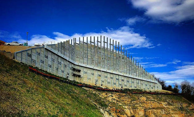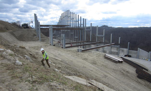 After Yeager Airport’s overrun area was lost to a landslide in 2015, ORDERS Construction Company was selected to oversee the installation of a new retaining wall and EMAS safety system. An innovative two-part structural design, the walls are made up of traditional soldier pile and concrete lagging with rock anchors. The lower wall was backfilled with select graded soil and crushed stone and the upper wall utilized high density geofoam blocks stacked in sequence. The crew overcame many challenges during construction, including near vertical topography for wall construction and building the project during the wettest construction seasons in recent history.